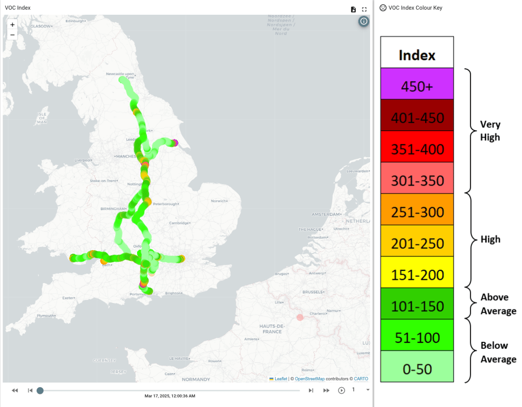 A single EnviroSense unit can record up to 5000 readings per day and is small enough (~ 140 x 50 x 40mm) to be mounted on moving public vehicles (busses, taxis, couriers) as well as in static locations. This enables reliable, accurate readings to be accessed on an easy-to-use dashboard with access to LIVE data as well as historical records. Power consumption is ~1.5W in operation.